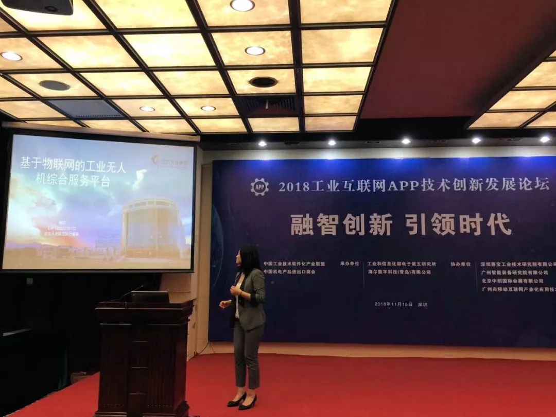 天途执行董事杨苡女士受邀在同期举办的工信部2018工业互联网技术创新论坛上,进行《基于物联网的工业无人机综合服务平台》的专题报告,向工信部、产业联盟和经信委领导及与会代表分享工业无人机服务平台的创新模式及产学研成果。