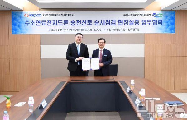 10月29日,斗山摩拜创新(DMI)与韩国电力公社(KEPCO)电力研究院签署“关于利用燃料电池无人机技术改善电网巡检效率”的谅解备忘录,即通过燃料电池无人机技术实现长时间飞行的电网巡检,以改善作业安全,节省时间成本,提高巡检效率。
