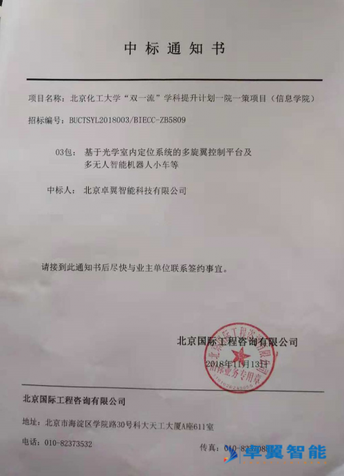 近日,卓翼智能再传喜讯,在北京某知名高校的“双一流”学科建设计划项目竞标中,以雄厚的技术能力及综合实力等优势中标;双方的合作将大力推动该高校无人机实验室建设,为其“双一流”学科建设提供雄厚的技术保障。卓翼智能的无人机系统作为其机器人教学系统中的一个创新实验平台的细分品类,再次以卓越的技术优势获得了业内专业人士的认可。