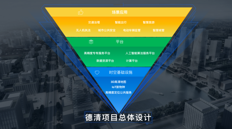 在德清“精准时空城市大脑”项目的总体布局上,千寻位置给出了从底层时空基础设施到平台,再到场景应用的全面顶层设计。