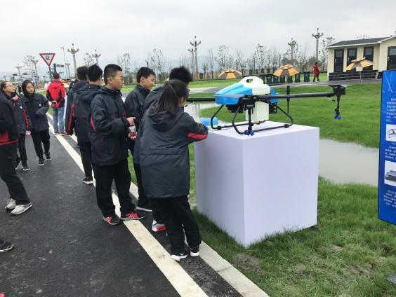 值得一提的是,户外展示当日,A16引起了中学生们的注意。这群来自德清某中学的小科学爱好者对A16可谓是兴致盎然。“快看!这是无人机!”扎着马尾辫的小姑娘激动的说。“我早就见过啦,这是打农药的无人机,用遥控器操作的。”一名戴着眼镜的小男孩一脸骄傲的对同学们说到。