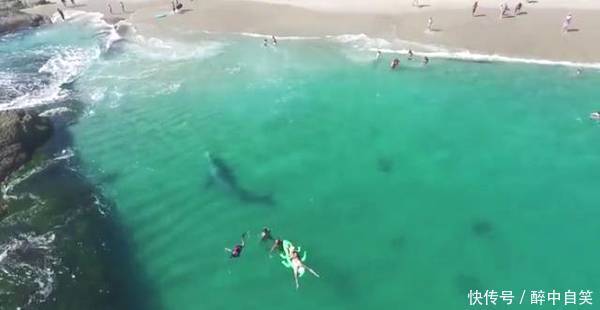 原来男子拍沙滩的时候,看见正在游泳的女游客旁边有一个黑影,男子好奇的放大了画面,发现有一只鲨鱼闯进了游客游泳的浅水区,一般情况下鲨鱼是不会来浅水区的,令人感到恐惧的是,还有一位女游客正在水面上游泳,丝毫没有注意到身旁有一个庞然大物,危险正在降临,还在玩的不亦乐乎。