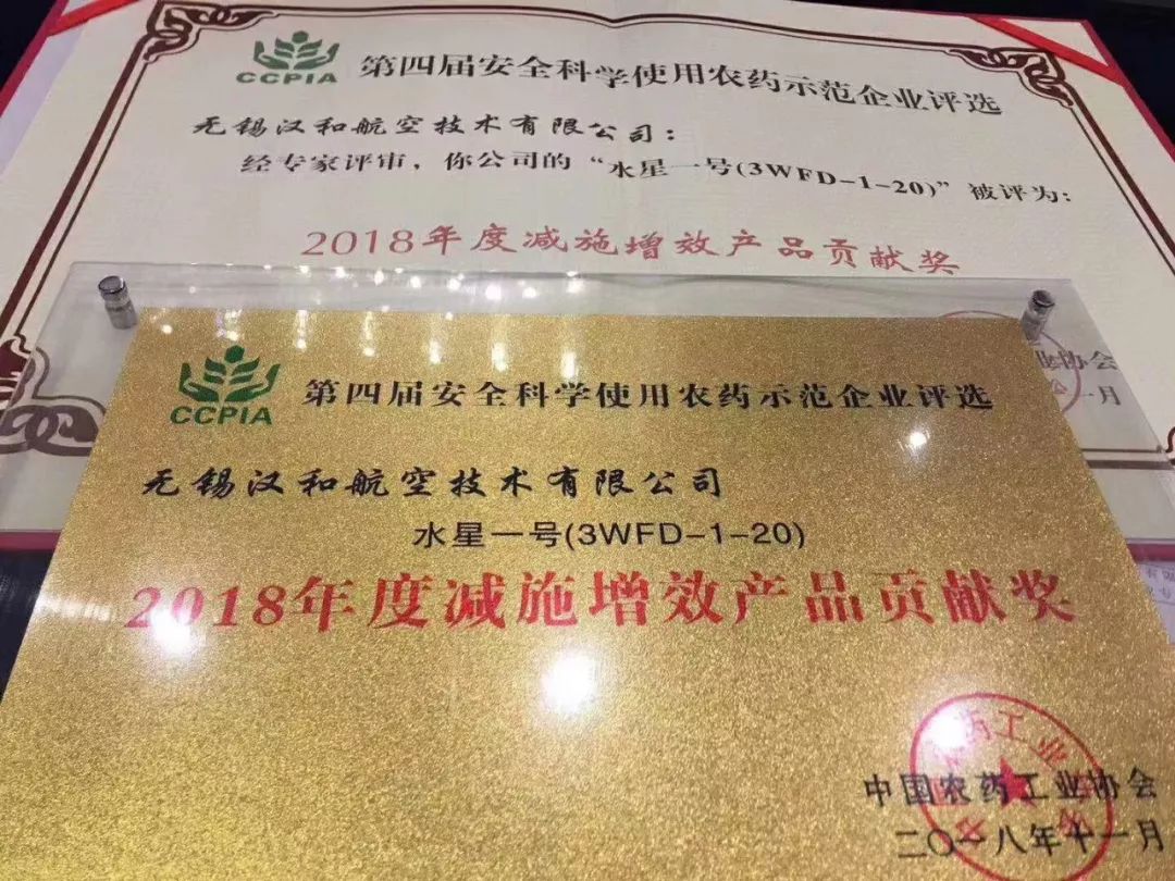 在这些奖项中,汉和航空水星一号获得了“2018年度减施增效产品贡献奖”。这是对水星一号植保效果的肯定,也是对汉和航空企业价值的肯定。
