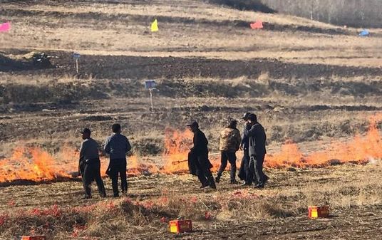 11月初,青海省海东市化隆县8名村民在二塘乡工哇滩村三塘湾内煨桑、放鞭炮,由于风势较大,引燃周边草丛,但因火势蔓延速度极快,迅速引燃附近的灌木丛,并逐渐引燃其它火点,见迅猛的火势无法得到控制,3名村民随机逃离现场,另外5名村民脱下衣服灭火自救。其中一名村民拨打森林火警报警电话,向化隆县森林防火指挥部办公室报警……