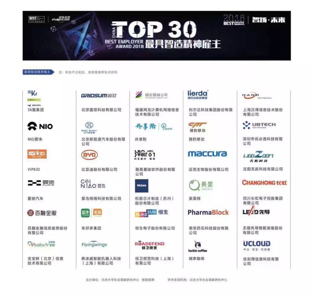 ▲2018智联招聘“最具智造精神雇主”获奖名单