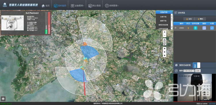 通过无线侦测技术,系统在管控区域内能够实时发现无人机的踪迹,为塔台指挥员提供准确的指挥参考。在起飞降落核心区域内,即跑道南北两端3公里范围一共部署了2台管制设备,通过与空管指挥联动,可及时对入侵无人机进行干扰,使其迫降或返航,以保障机场的运行安全。