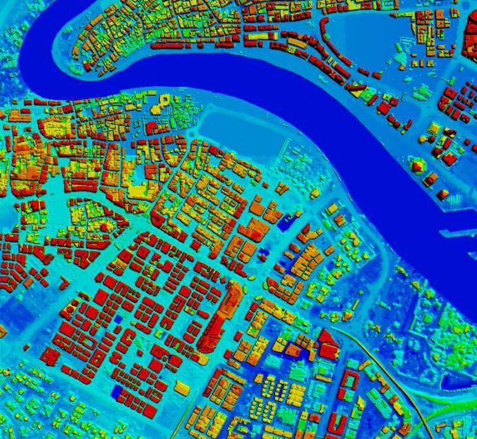 数字表面模型(DSM),能快速构建具有准确地物地理位置信息的真三维空间场景,直观的掌握测区地形地貌与所有建筑物的细节特征,可作为空间基础地理信息数据可直观的反映地物形态(建筑物、道路、河流等),并作为倾斜三维模型、1:500地形图内业数据采集的基础数据。