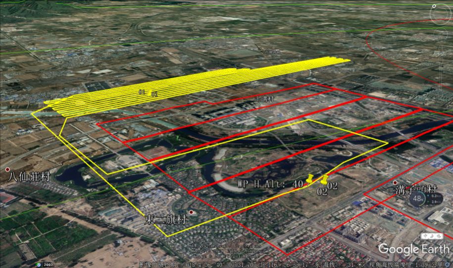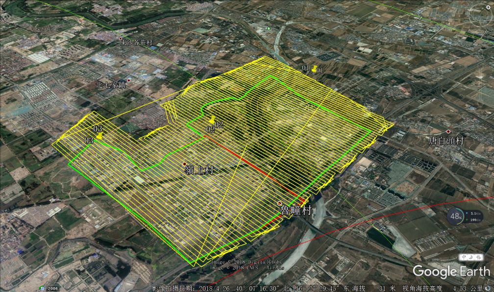 本次任务测区面积10.4平方公里,采用航向80%、旁向75%、地面分辨率优于4cm、测区边缘外扩1倍航高距离进行航空摄影。