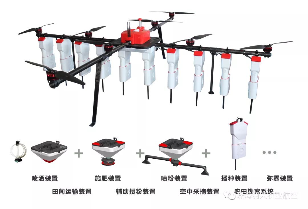 公司植保无人机产品主要有多旋翼植保无人机、农用无人机、喷药无人机、遥控多旋翼无人机,该类农用无人机广泛应用于农作物药剂喷洒、杂交水稻制种辅助授粉、农作物信息勘察、播种、施肥等农业领域。相继获得“辅助授粉”、“仿地飞行”和“防浪涌药箱技术”等80余项农用航空器专利技术,产品通过国家植保机械质量监督检验中心的检测,获省级农机补贴选型鉴定和证书,是多家省级政府采购的中标单位。自2015年起,农业部农机推广总站指定羽人在河南、江苏、广东、新疆、吉林等省进行试验示范。产品已经过区域大面积的作业验证,产品技术性能指标优异。