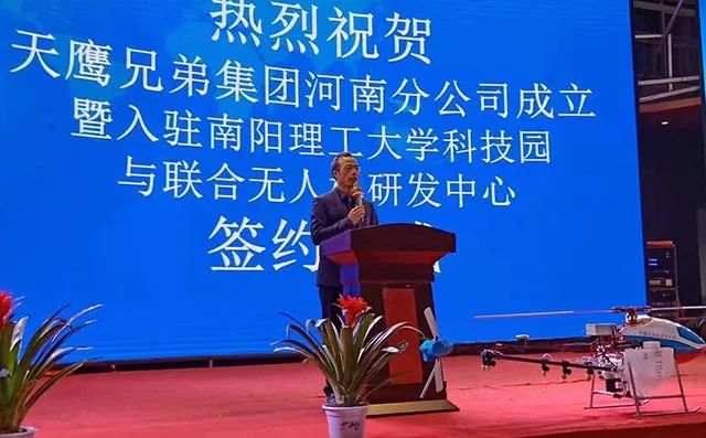 天鹰兄弟集团与南阳理工学院校企合作成立的河南分公司,已签约入驻南阳理工大学科技园。接下来河南分公司将集中发力于无人机专业建设,提供大学生创新创业服务平台,打造本地化服务的植保无人机产业链。