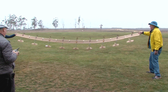在去年,Ran D. St. Clair对其体型庞大的“九段式”柔性无人机(长约33英尺)的测试后,目前他正着手于完善其柔性飞机的设计理念。据了解,早期的时候,他也制造过一架三段式的柔性飞机,经过一系列测试,该模型能够保持长时间的高空飞行。