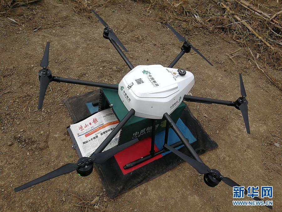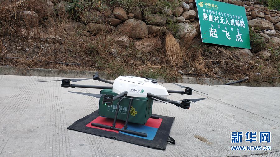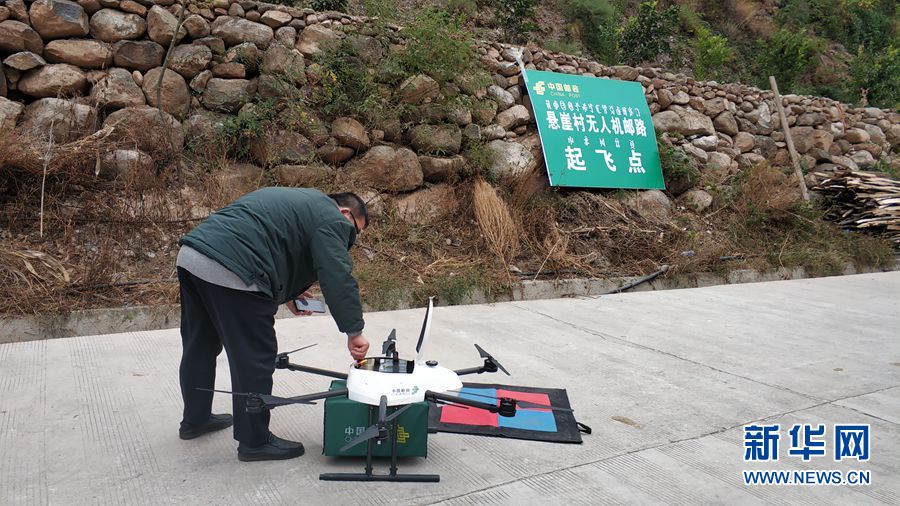 邮政无人机降落在“悬崖村”。