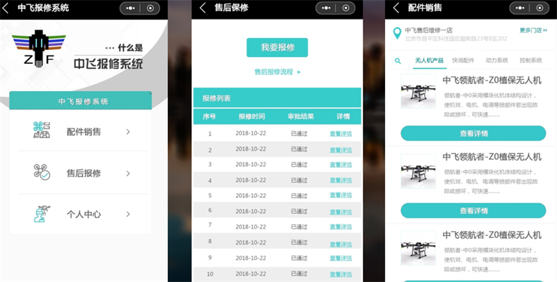 中飞航空为植保无人机用户量身定制的硬件增值保障服务,最大程度的节省用户质保维修时间成本,提高作业效率。全面的售后管理系统,可以实现现上采购零配件、事故报修操,作更加便捷。遍布全国的线下服务站,超过一百多家,可以为客户提供快捷高效的售后服务。