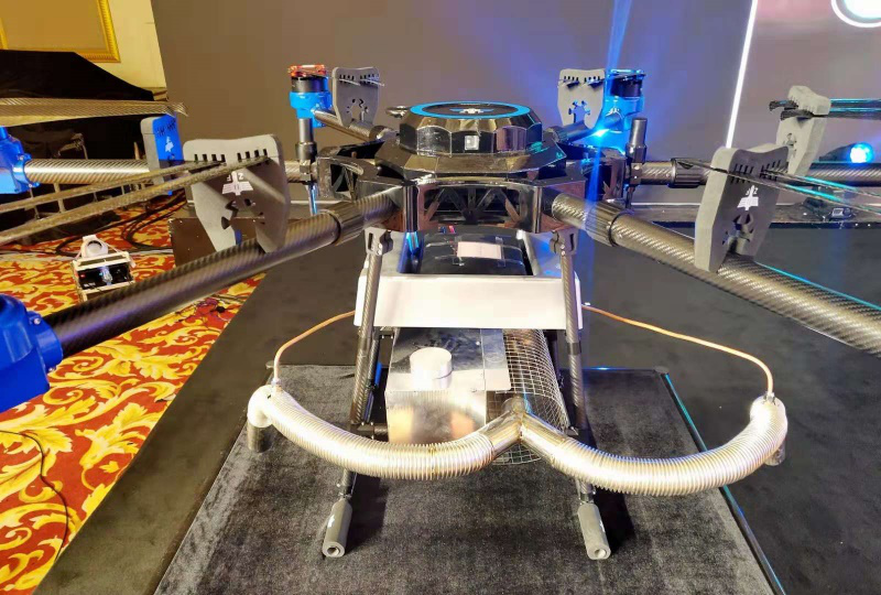 领航者Z-20(RTK)也是此次大会所展示的一款亮点产品,其拥有20L的负载能力,并其拥有6个压力式喷头。当然,仅仅是具备20L的大载荷并不是这款产品的最大亮点,其最大的特点是如果用户发生炸机的情况下也不必担心耽误农活,可直接将最长的两个机臂更换下来,瞬间成为一款可继续作业的6轴植保机,继续执行农业喷洒。