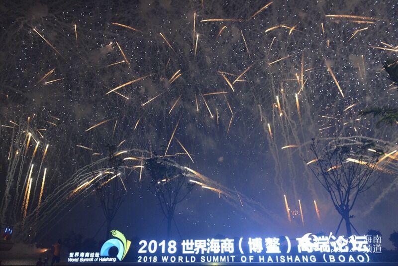 论坛举行当晚,博鳌夜空中绽放出美丽的烟花和无人机表演,五彩斑斓,光彩夺目,点缀了整个博鳌的夜空,预祝海商大会取得圆满成功。