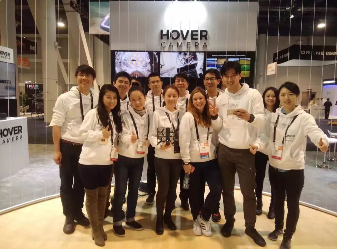 2017年CES展上用Hover Camera拍摄团队合影(右三为王孟秋)