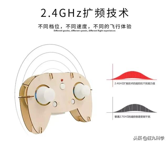 另外它采用2.4G无线视频收发芯片,相较于普通的2.7GHZ的芯片,它的抗干扰性能更强,不同档位、不同速度都能轻松hold住。
