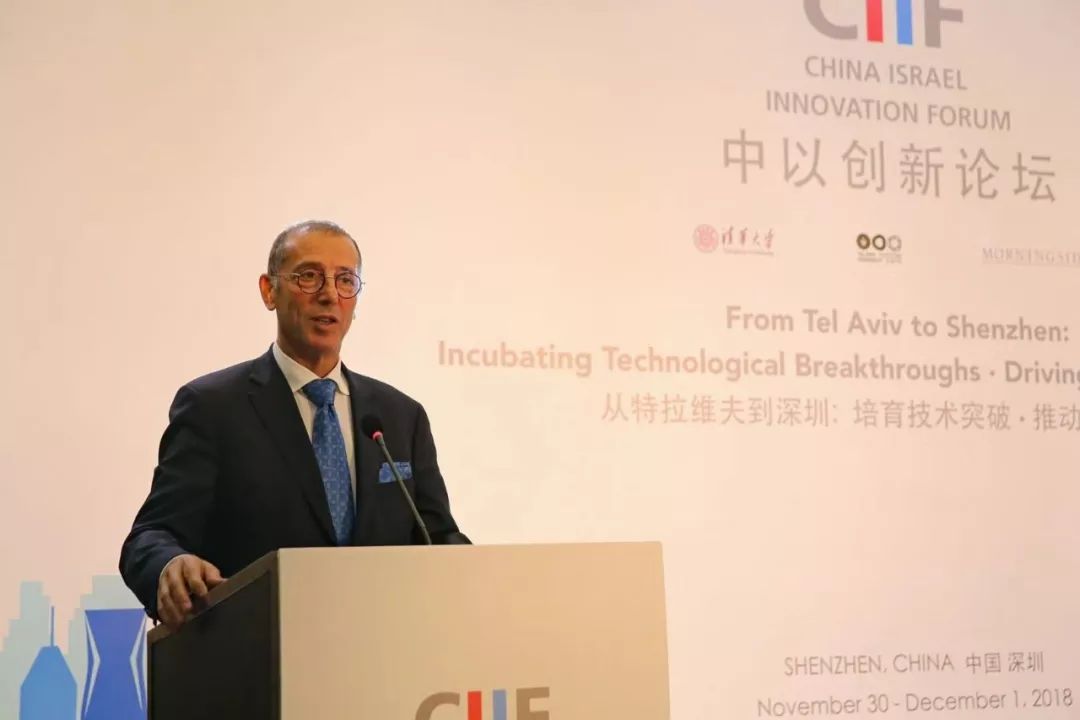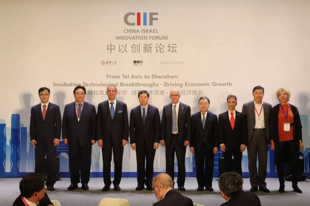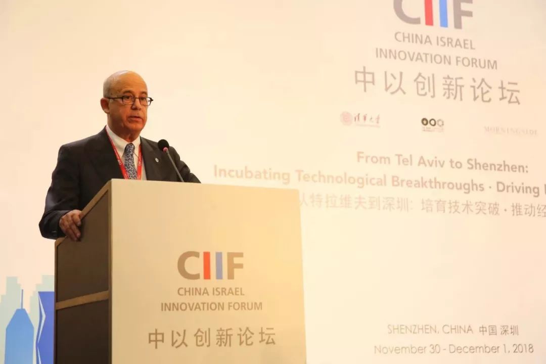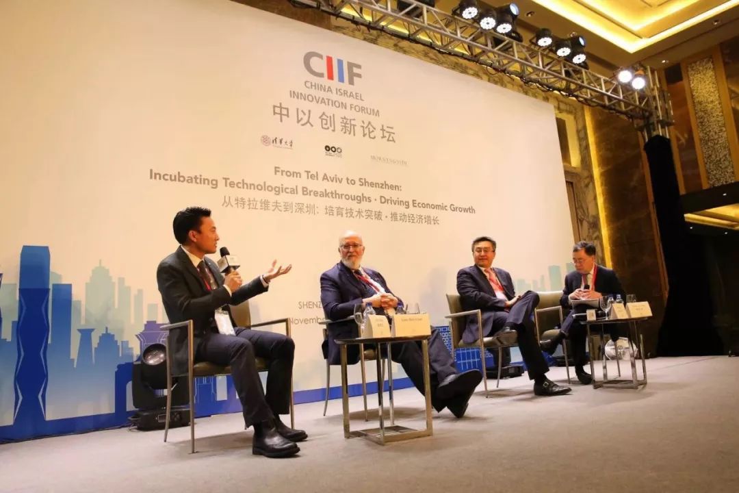 11 月 30 日晚,以色列驻华大使何泽伟(Zvi Heifetz)、深圳市副市长王立新、特拉维夫大学校长约瑟夫·克拉夫特(Joseph Klafter)、清华大学校长邱勇、晨兴集团联合创始人兼恒隆地产董事长陈启宗出席论坛并发表了致辞。