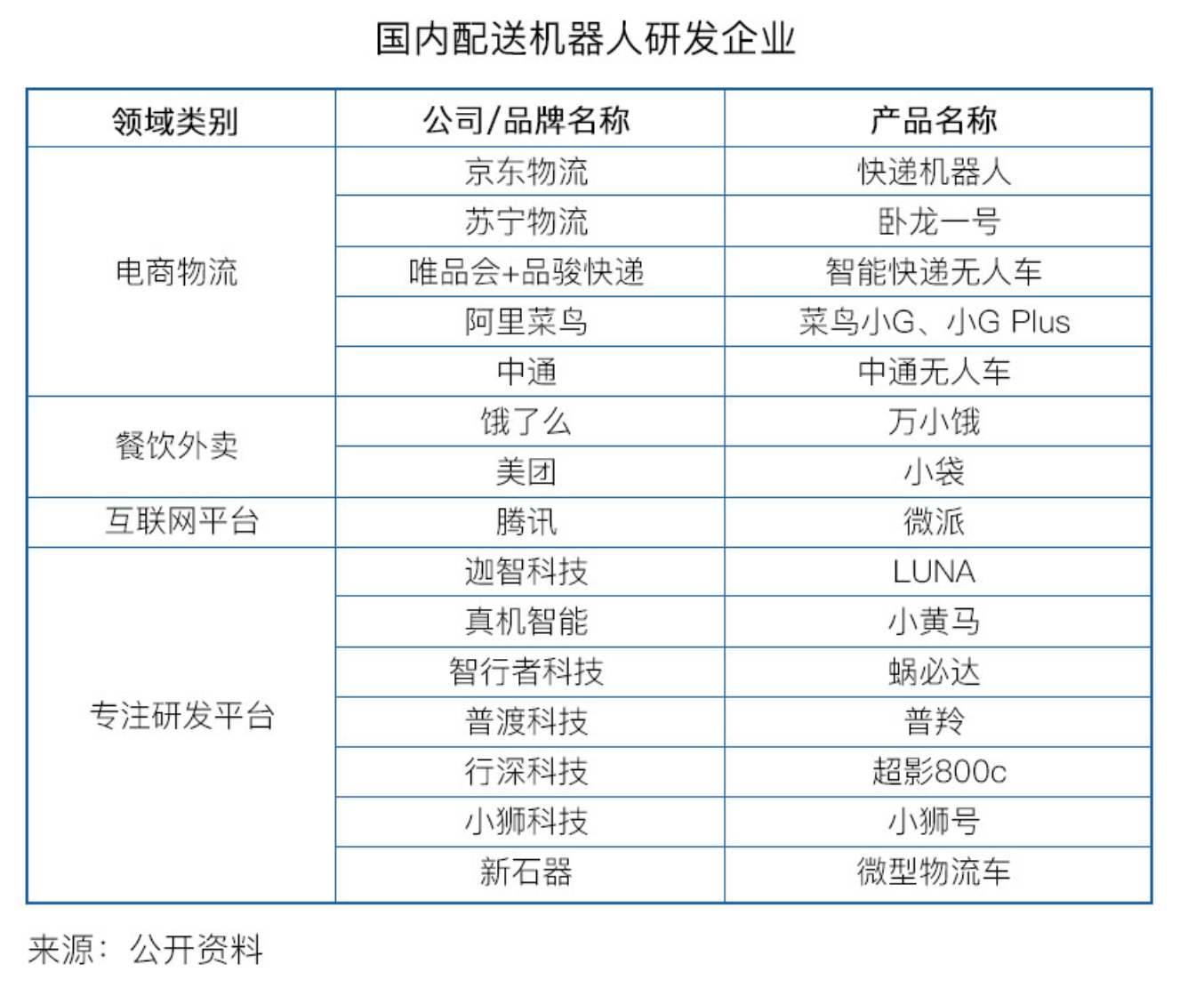 就目前而言,无人驾驶不仅受到传统车企的关注,还受到很多电商、快递、餐饮等企业的青睐。如图分别为国内配送机器人和无人卡车研发企业的梳理情况: