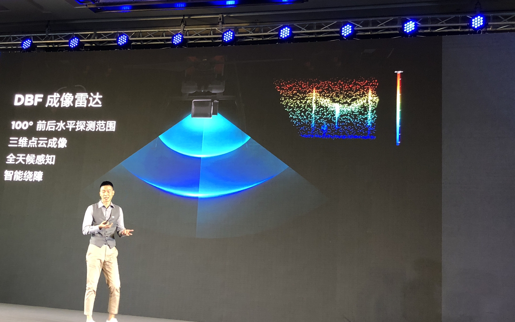 值得一提的是,除了外观设计、作业效率上的改进,大疆这次在植保无人机上使用了 DBP 成像雷达。这项技术可以让无人机在飞行喷洒的过程中具备前后双向避障的能力,进行 100° 水平方位的探测。