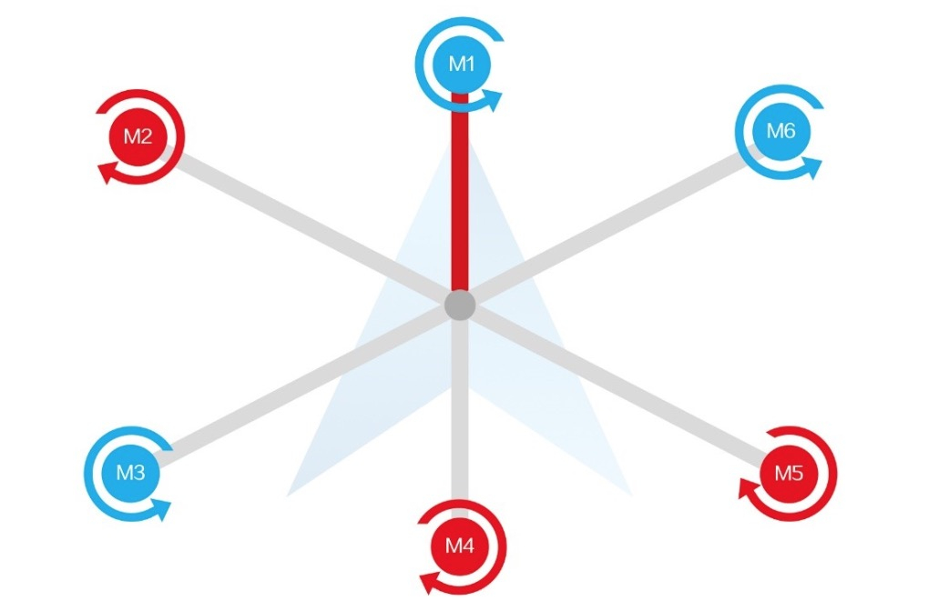 T16 使用异型六旋翼设计,桨叶旋转的方向与常规六轴无人机的有所不同,特殊设置的旋转方向可以使下压风场气流更加稳定,减少雾滴上扬,增大有效喷幅的同时达到更好的雾滴沉降效果。