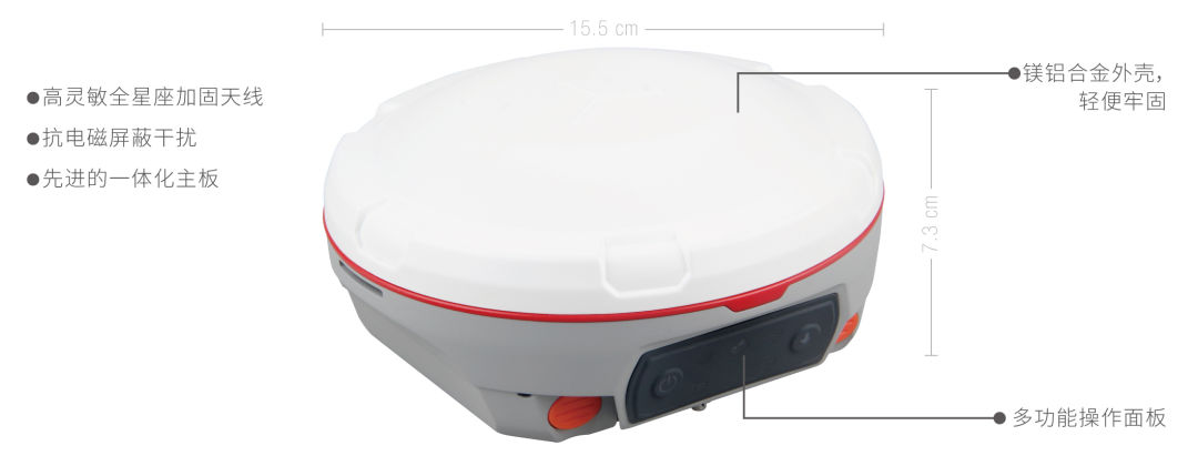 T30采用铝镁合金外壳设计,有效屏蔽电磁干扰,高灵敏全星座加固天线,全力保障天线的一致性和绝对精度。