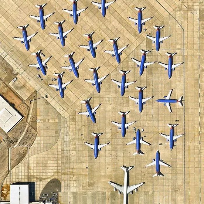 ▼美国加利福尼亚州,南加州物流机场。这样停靠的飞机,有点可爱。