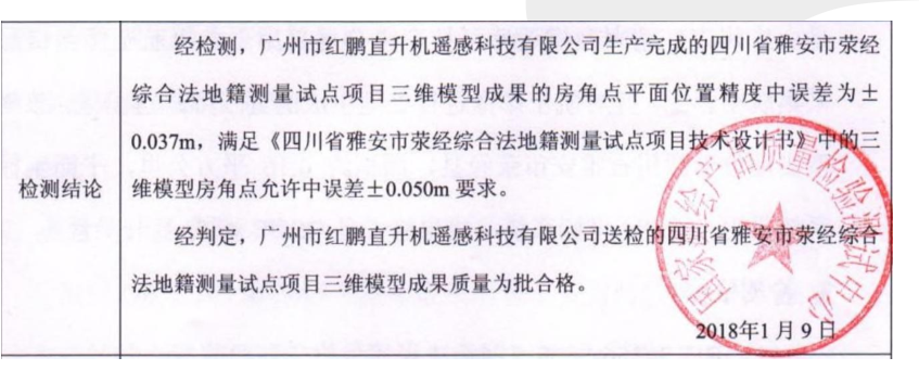 红鹏“小金牛”AP3400R高精度多视角倾斜相机测量的精度完全满足1:500地籍测量要求,地籍要求的精度在5厘米以内,而经过国家质检中心出具的鉴定报告红鹏“小金牛”AP3400R高精度多视角倾斜相机平面中误差达到3.7厘米,完全满足地籍测量要求,因此其技术难度和精度之大可想而知。值得一提的是,在目前多镜头倾斜摄影相机中能够按要求完成地籍测量的产品可以说是凤毛麟角,“小金牛”的应用将大大的提高今后传统的地籍测量作业效率,大大的降低对人工以及传统设备的需求。