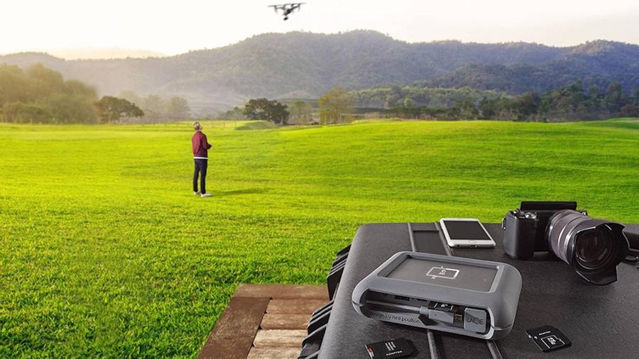 Lacie的BOSS硬盘是专为“备份套装解决方案”主题而设计的,通过设备的SD卡插槽和USB端口直接从其他设备传输文件,不需要再借用Mac传输。更加特别的是该设备对DJI无人机的适配,可以通过DJI Copilot BOSS应用程序对视频进行排序和查看。