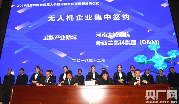 活动期间,翱翔航空、兰旗航空、大诚通航、D&M新西兰高科集团等无人机企业集中签约武陟产业新城, 武陟产业新城无人机产业基地正式揭牌。
