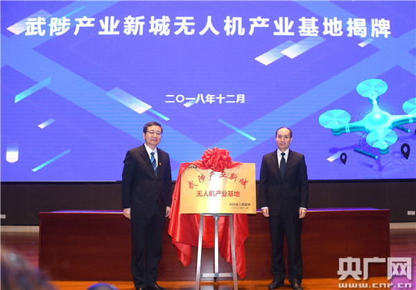 焦作市政府副市长孙起鹏、武陟县委书记秦迎军共同为武陟产业新城无人机产业基地揭牌。
