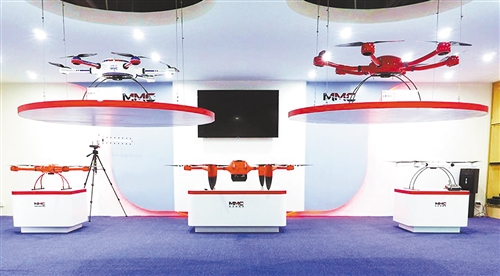 科比特航空科技有限公司展示的各类工业级无人机产品。 (资料图片)
