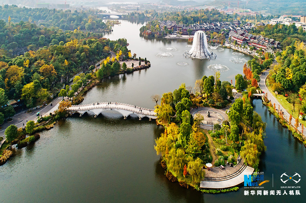 秀湖国家湿地公园位于重庆市璧山区,这里城湖相接、山环水绕,处处是亭台楼榭、廊桥水岸,风景秀美。图为无人机航拍视角下的重庆秀湖国家湿地公园,冬日里平添几分静谧。新华网发(龚祖章 摄)