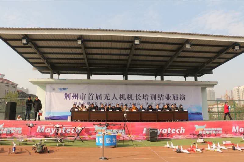12月12日上午,由荆州理工职业学院主办“荆州无人机驾驶员培训中心揭牌仪式”暨“荆州市首届无人机机长培训结业展演”、荆州理工职业学院2016级无人机应用技术专业毕业汇演、2018年第九届Mayatech杯航模竞技竞赛在学校操场举行。中国民用航空局、中国航空器拥有者及驾驶员协会(AOPA)、湖北省无人机产教联盟、省内多所兄弟院校及无人机行业知名企业的领导与代表与会。此次活动规模之大、影响力之广均创历年来湖北省最大。