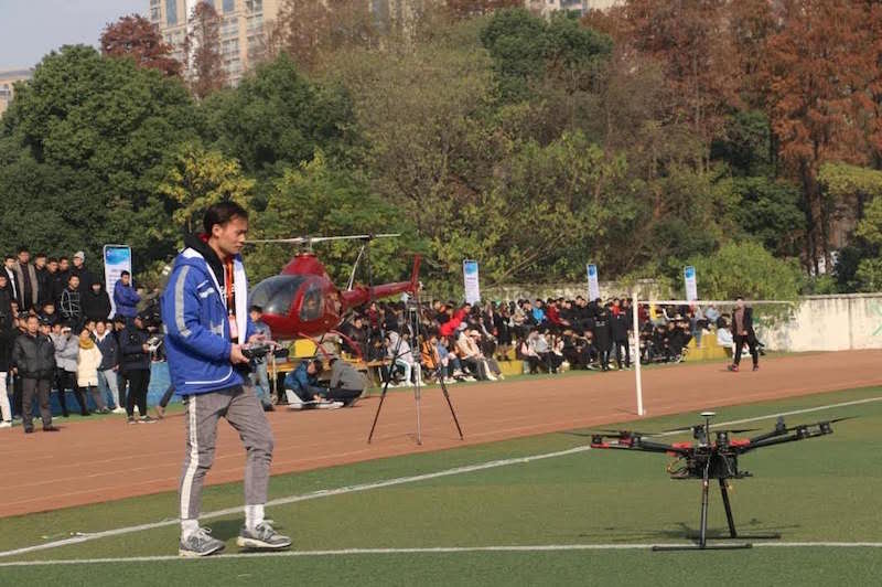 一波未平,一波又起!展演结束后,2018年第九届“Mayatech”杯航模竞赛拉开帷幕,该赛项是湖北省无人机行业协会认可度最高的权威赛事,来自全省各高校的无人机飞手们,炫酷登场,一展沙场风采,他们用手中的遥控器骄傲地主宰了这片蓝天!这一刻,起航的不仅是无人机编队,更是我们新时代的梦想!