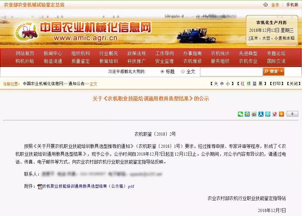 刚公示《农机职业技能培训通用教具选型结果》中,天途入选结果揭晓: