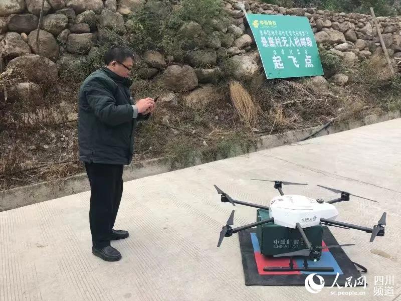 11月29日,一架载着当日党报党刊和快递包裹的无人机在邮政工作人员的操作下,从凉山州昭觉县支尔莫乡阿土列尔村(悬崖村)山脚下起飞,20分钟后,无人机稳稳地降落在“悬崖村”所在的山顶。