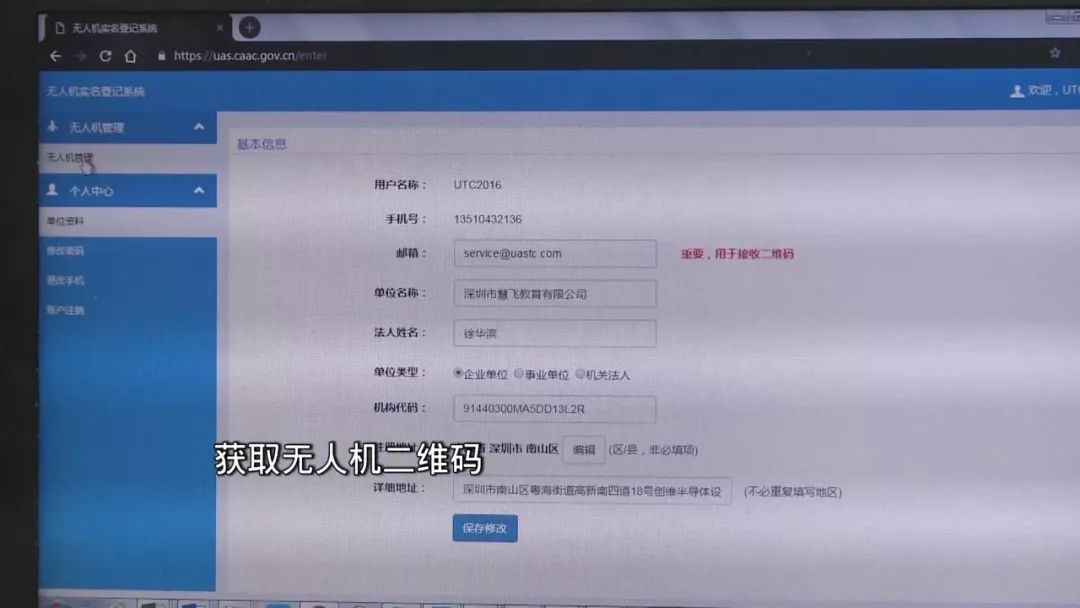 首先在民航部门无人机实名登记系统进行登记