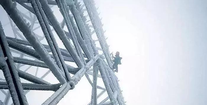 “在气温零下3度时,需要边敲冰边往51米高(相当于17层楼)的铁塔上爬,然后安装融冰短接线,爬了2个小时还爬不到三分之一”