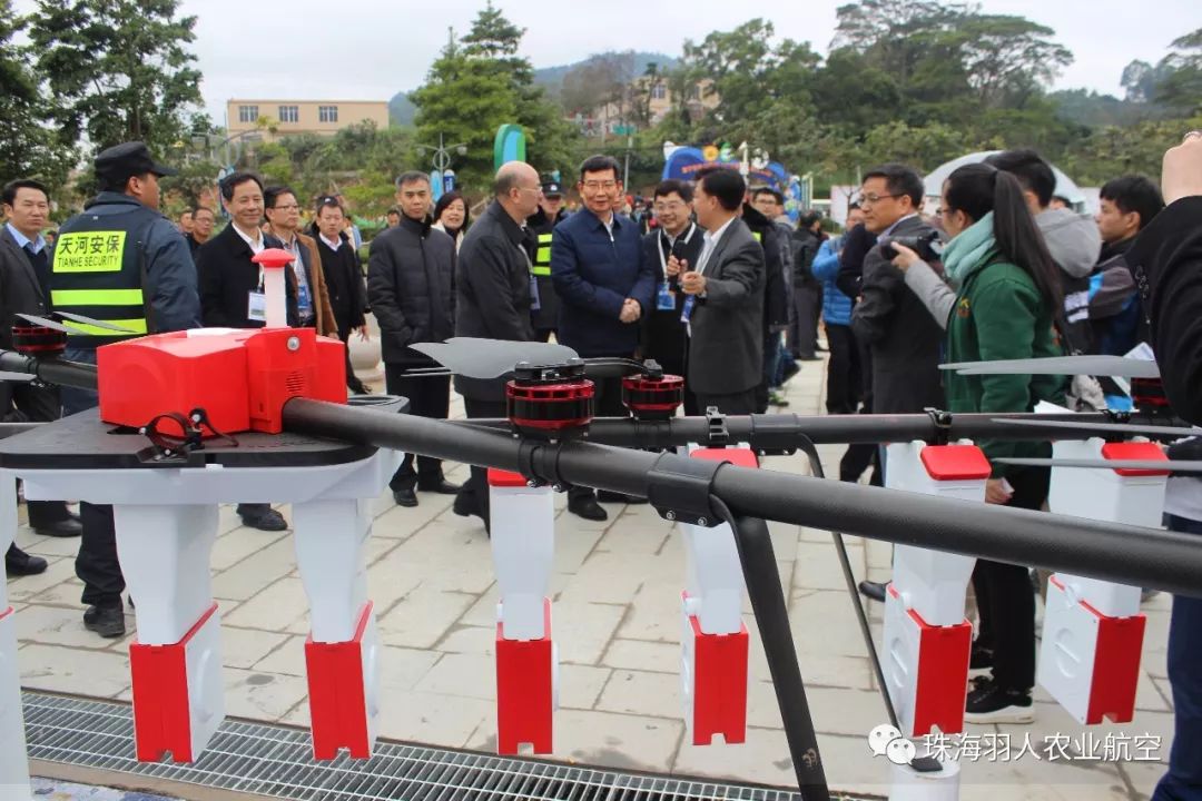 展会期间,省领导莅临了珠海羽人展位,观看了多功能农用无人机展品。众领导参观了无人机产品,与参展人员详细了解企业的研发、生产、销售等经营情况后,对珠海羽人的多功能农用无人机产品表示高度赞赏。更是对珠海羽人新推出的水稻种子精量无人机纷纷点赞称好。