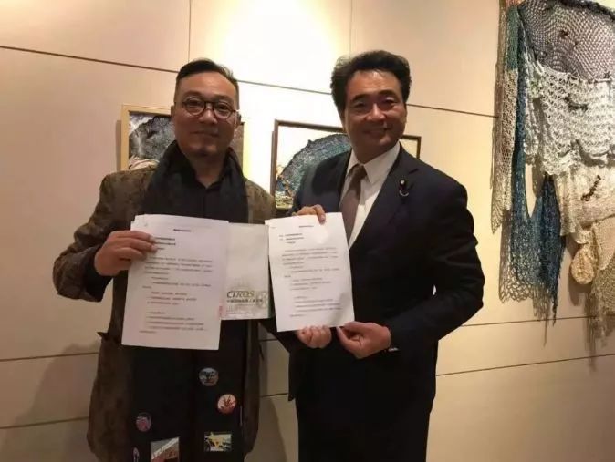 (左)日本亚细亚经济文化振兴机构理事长、中日一带一路促进会会长 山谷道人·黄实 (右)日本亚细亚经济文化振兴机构顾问、参议院议员、自民党外交部会长 松下新平