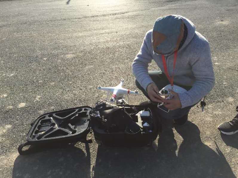 这台无人机最高可以飞到500米高空,监测半径2公里,下设高清探头,地面操作人员通过iPad或手机可实现实时监测、查看。