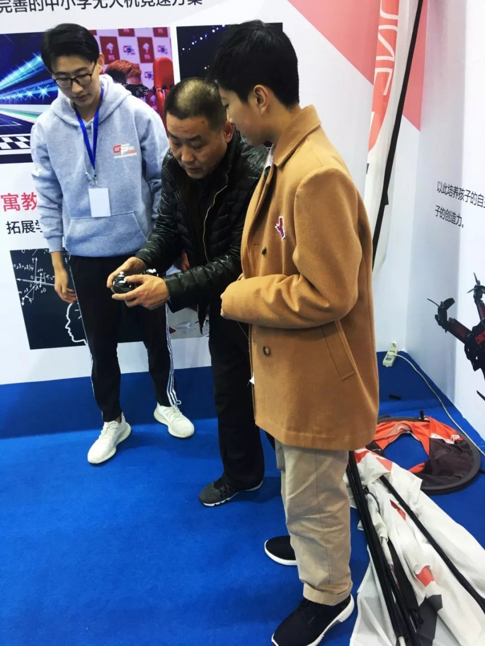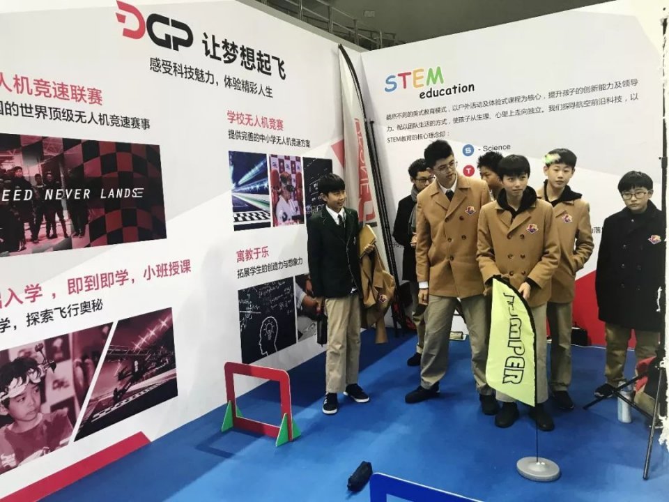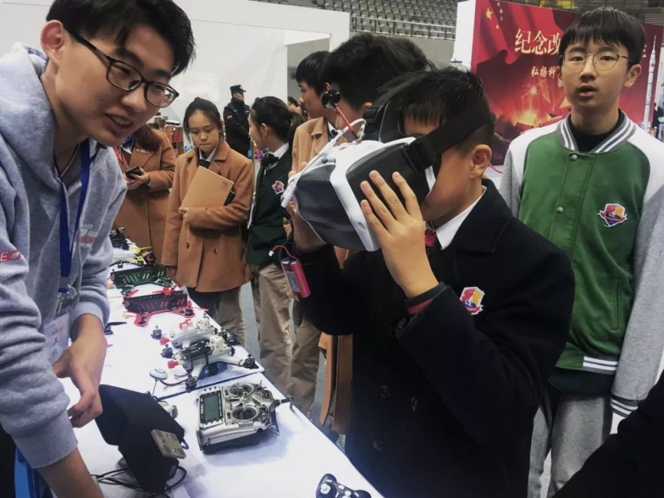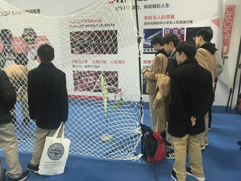 没想到短短时间竟然有这么多学生及家长的光顾,展位周边人潮涌动,现场相当火爆。这群00后学生在现场老师的教导下,各个都飞的有模有样,感受到无人机竞速带来的乐趣。