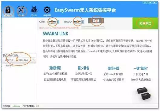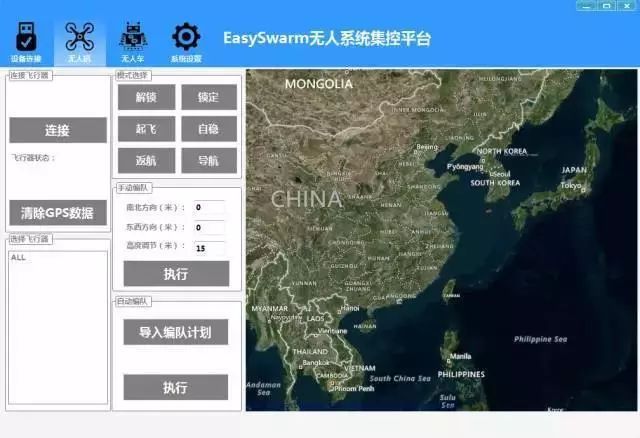 EasySwarm上位机软件支持无人机和无人车两种工作模式。无人机模式下,控制数据链路基于MAVLink协议,支持对单架和多架无人机的控制和组网。无人机通信模式支持单播,广播,组播和中继。 EasySwarm目前支持RobSense Phenix全系列飞控,以及Pixhawk,ArduPilot等开源飞控。无人车模式默认支持红外循迹小车控制指令,可通过上位机软件对集群小车组网和控制。
