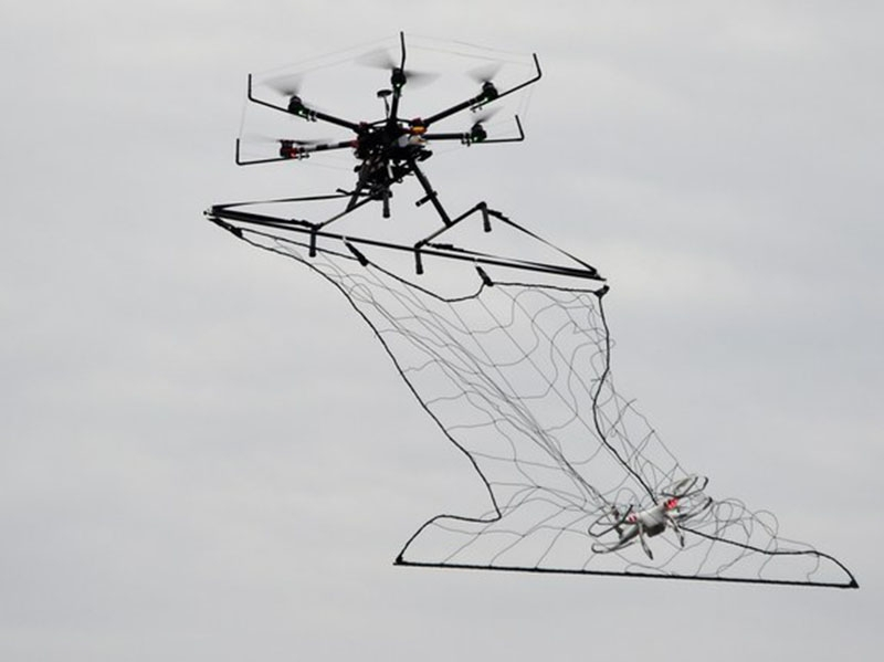 或者也可以选择以毒攻毒,2015 年时,因为对重启核电厂的政策不满,一位日本男子遥控无人机,载着有微量放射线的福岛沙子飞往安倍晋三官邸。在这起事件中,日本警察出动无人机撒下大网,成功拦下这架无人机。