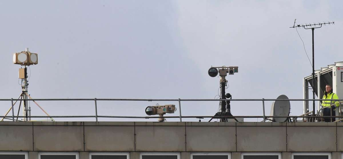 ▲12/21 架设于盖威克机场的反无人机系统。