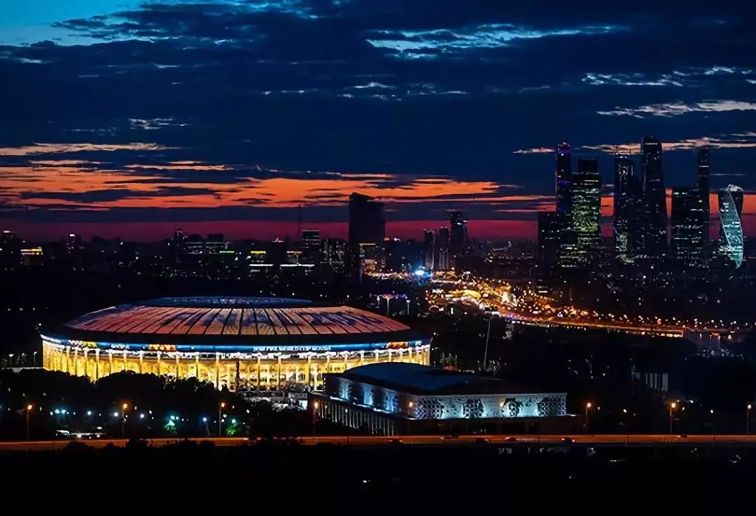 2018 年 7 月 13 日,2018 俄罗斯世界杯,卢日尼基球场夜景迷人,静待决赛到来。