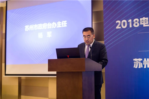 接着,由苏州市政府台办主任杨军致辞,他说道:“苏州市安防协会作为行业自律协会在政府部门的领导和企业的大力支持下不断发展壮大。以诚信体系建设,技术创新,团体标准建设和人才培养为重点,积极做好服务沟通宣传工作,有力促进了苏州安防行业的发展,融合,创新,很好地发挥了政府职能部门和企业之间的桥梁作用。这次与台湾中华安防协会共建友好协会关系,并共同举办海峡两岸智慧安防产品展,在安防协会事业交流,在两岸的交流发展中属于首创,这不仅是安防界的一大盛事,更为两岸经济文化交流增加了新的纽带。"最后他代表苏州市台办向为此次安防展倾力付出的协会企业与组织表示衷心的感谢,希望两地协会能够以此为契机,迈向新台阶,新高度。