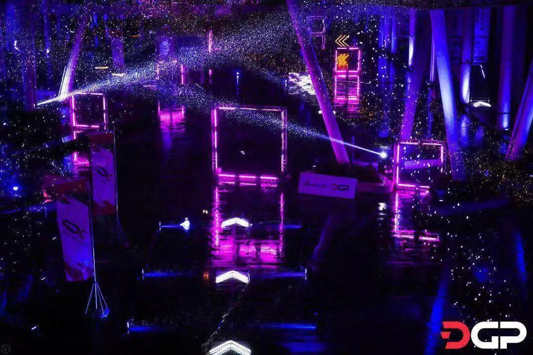 本次赛事选择了10000平方米的室内外组合场地,单圈约800米,也是目前亚洲第一个结合商业建筑,并实现室内外连续穿梭的场地。飞手们通过遥控穿越的立体赛道由近20个障碍门组成,赛道分为上中下层3层。