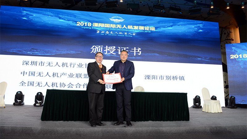会上,深圳市无人机行业协会、中国无人机产业联盟、全国无人机协会合作互助联盟为别桥镇颁授“中国无人机产业创新示范镇”证书。溧阳无人机产业园也与深圳市无人机行业协会举行了签约仪式。